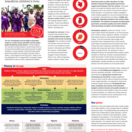 The Tax, Privatisation and the Right to Education project is a multi-country education and tax justice project funded by private donors.It brings together four countries working towards a common goal